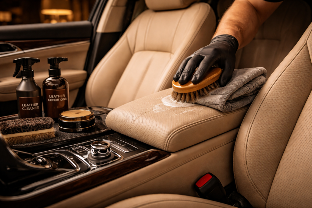 Our leather car seat cleaning service is designed for vehicle owners who want a fresh, clean, and well-kept interior. We carefully remove dirt, body oils, spills, stains, and dust from leather seats using premium leather-safe products.