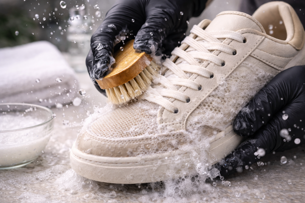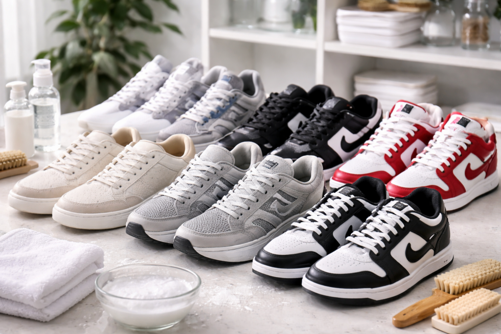 We clean sneakers using safe, non-harsh methods suitable for leather, mesh, suede, canvas, and mixed materials. Each pair is inspected and cleaned based on its condition.